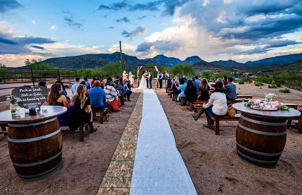 Surrounded by open skies, horses, and the calm presence of the desert, this is a place where meaningful moments unfold. Whether you’re planning an intimate ceremony or a larger celebration, our space provides a grounded, authentic experience that feels both relaxed and unforgettable.
